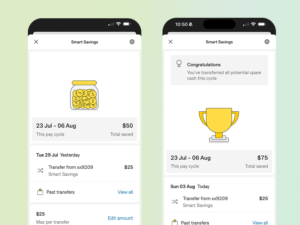 Allowing users to have a 'transfer option', either automatic or approved transfer was positively received. These controls gave users confidence that automation was working with them, not for them—building both transparency and trust from day one.